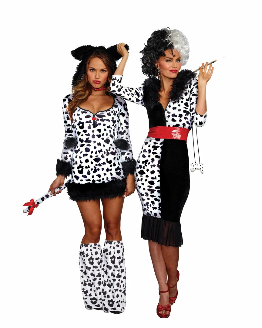 - This sexy Dalmatian costume for women has a flattering neckline with a small dog-bone zipper, and the sleeve cuffs and hem are lined with soft faux fur