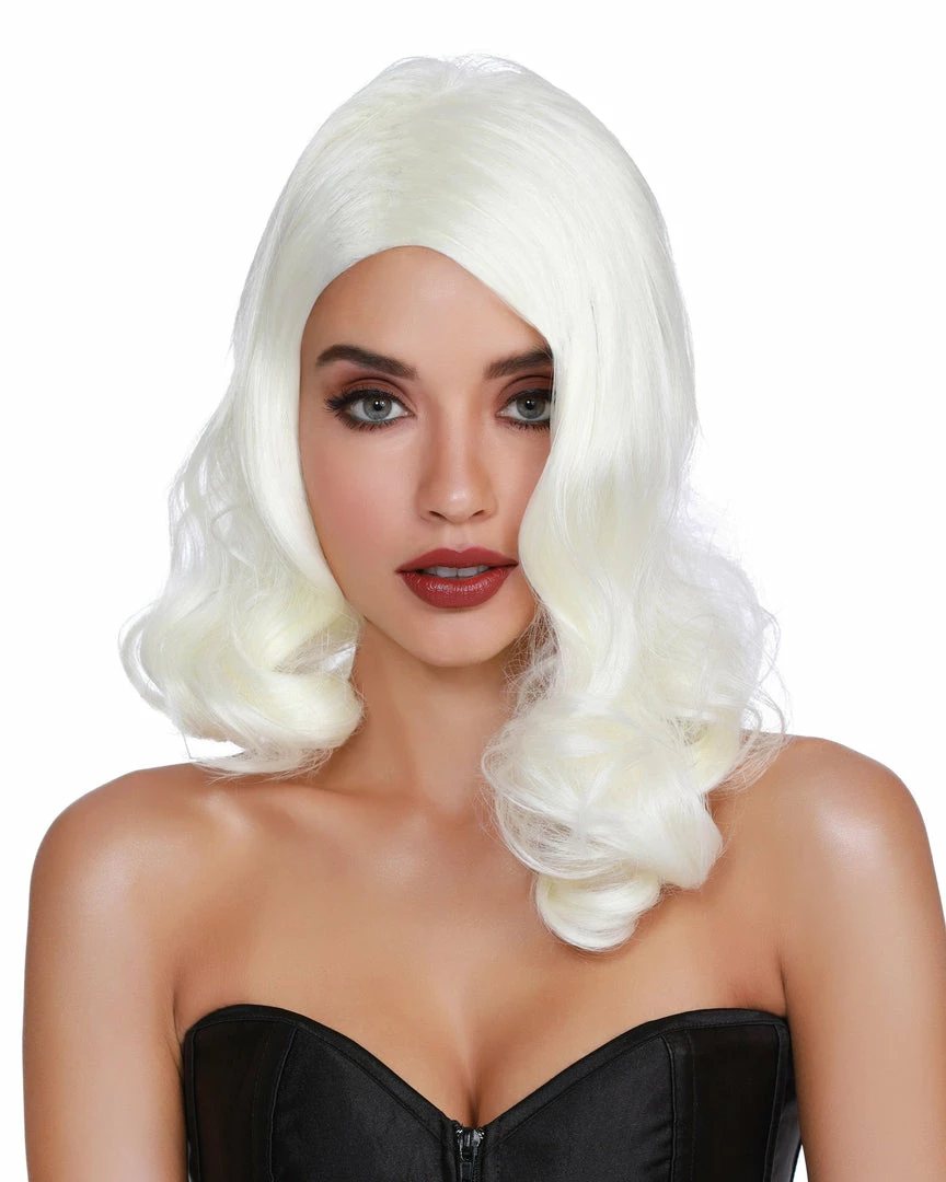 Holywood glamour wig that has an adjustable elastic closure which gives the look and feel of natural hair, allowing you to completely transform on Halloween… or any other night of the year!