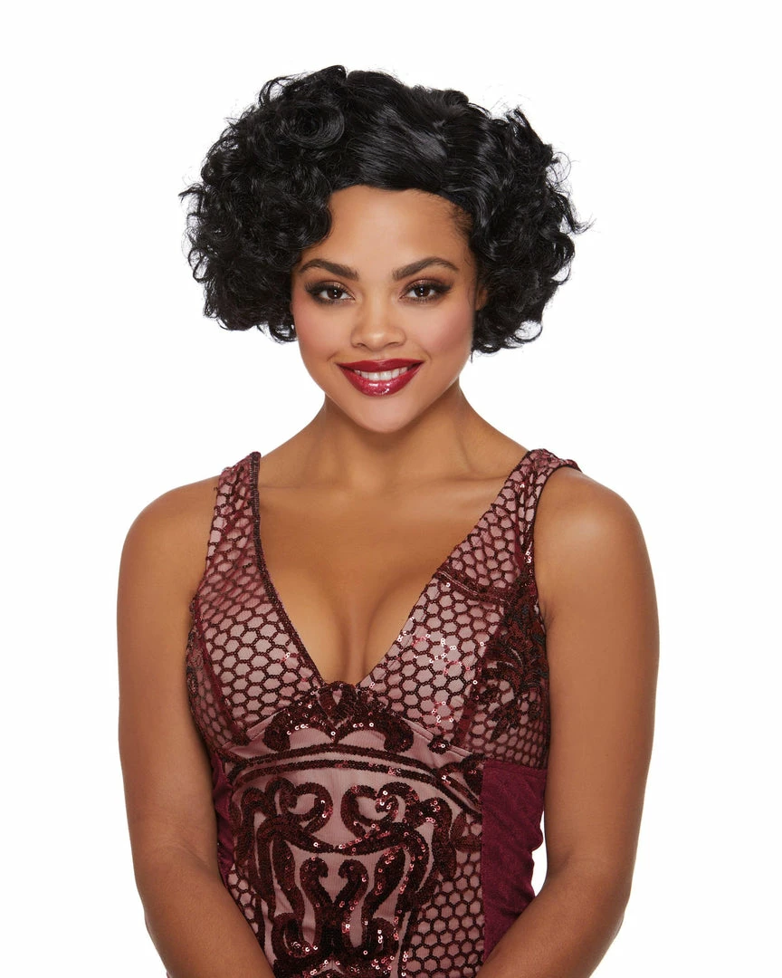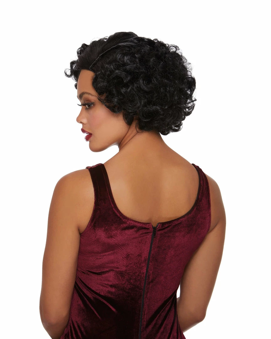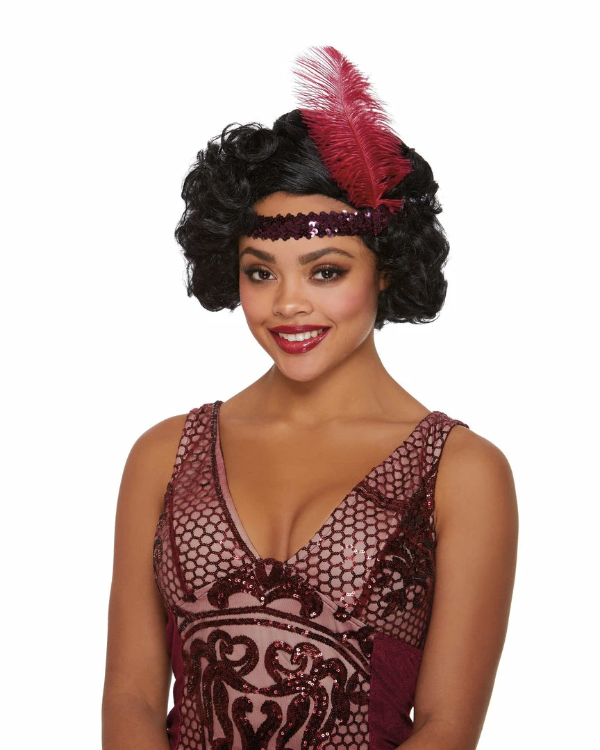 This Roarin 20’s Flapper wig has an adjustable elastic closure which gives the look and feel of natural hair, allowing you to completely transform on Halloween… or any other night of the year!