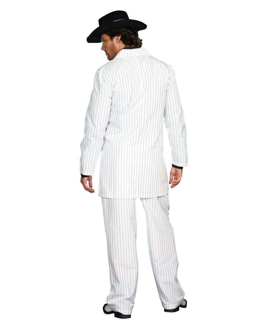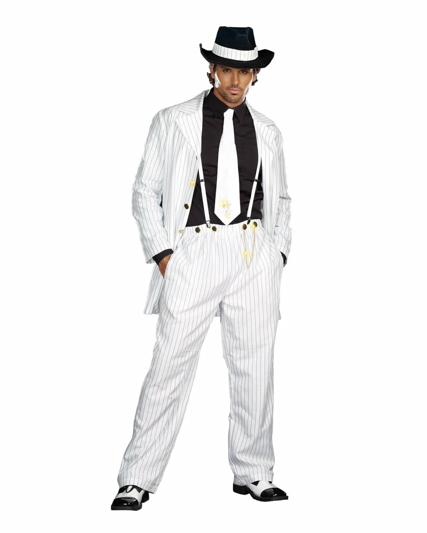 Fast cars, dim-lit rooms, buxom babes, and a boss attitude awaits you in this costume set that features a longer-length pinstripe zoot suit that comes with suspenders, hat, and necktie.