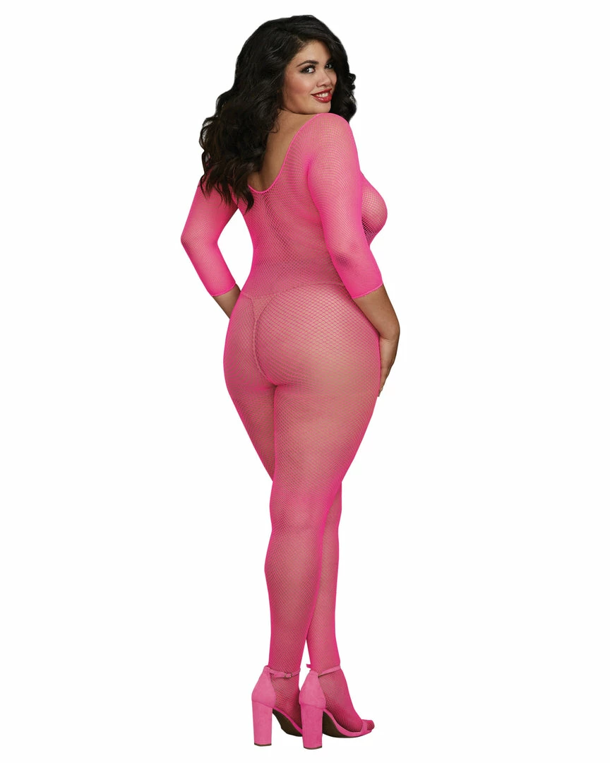 Plus size fishnet long sleeved open crotch bodystocking (thong not included).