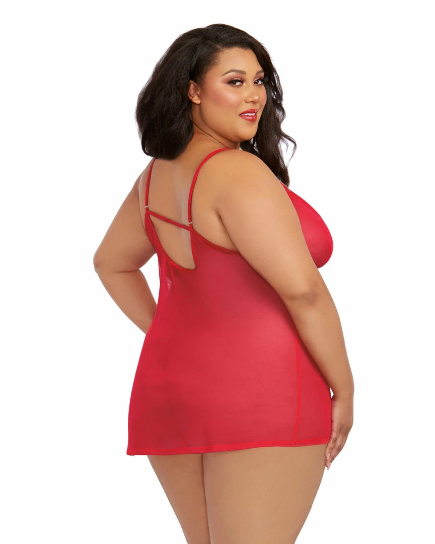 Dreamgirl International Plus Size Stretch Mesh Chemise With Shirring Details LINGERIE