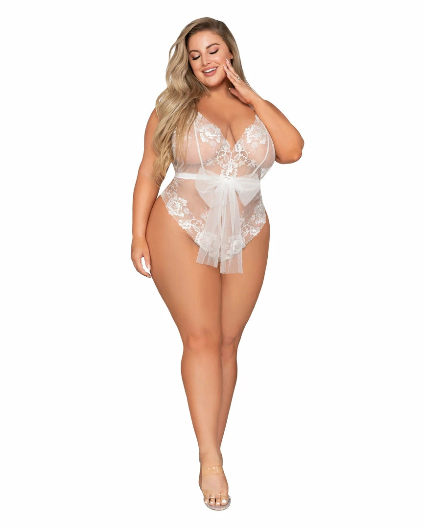 Dreamgirl International Lace Mesh Babydoll & G-String Set With Exposed Underwire Cup Detail