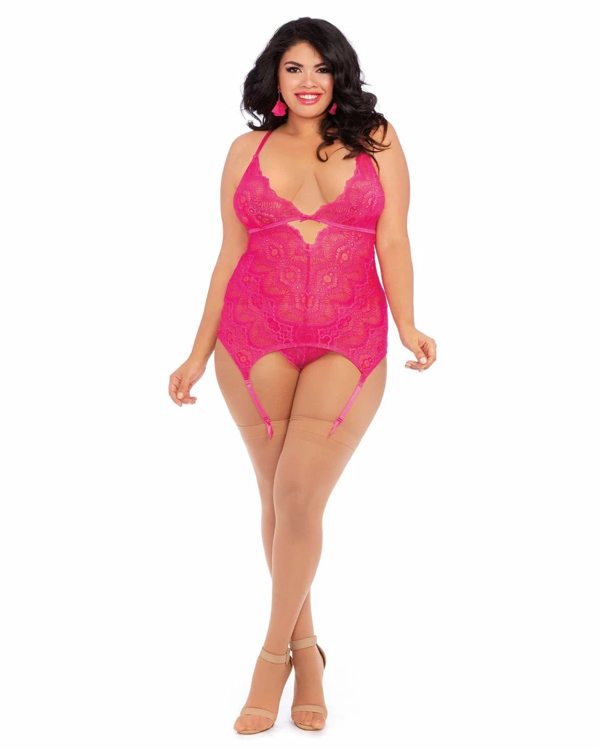 Dreamgirl International LINGERIE Plus Size Flocked Pin Dot Stretch Mesh Garter Slip