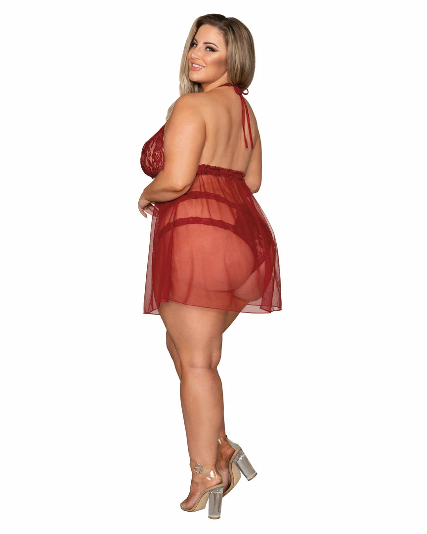 Dreamgirl plus size stretch lace & mesh babydoll featuring: