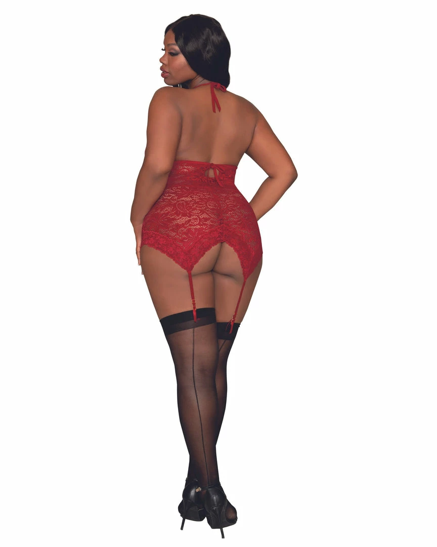 Dreamgirl International Lace Mesh Babydoll & G-String Set With Exposed Underwire Cup Detail