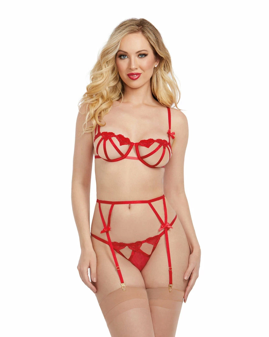 - 3-piece underwire bra, G-string & garterbelt set