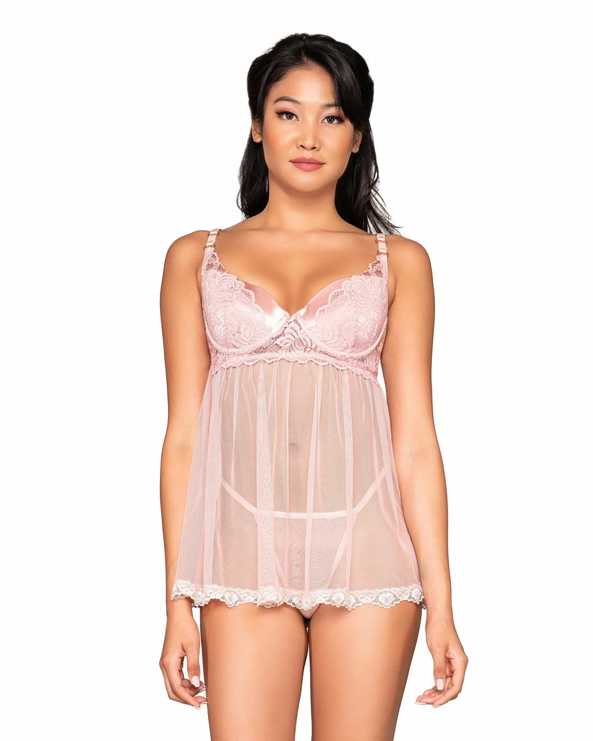 - Stretch satin underwire & foam lined cups with lace overlay detail