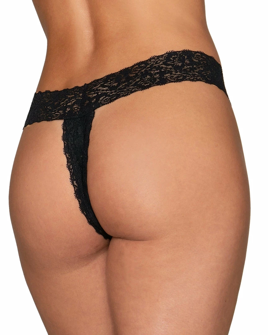 Dreamgirl International Stretch Lace Open Crotch Thong With Stretch Lace Waistband