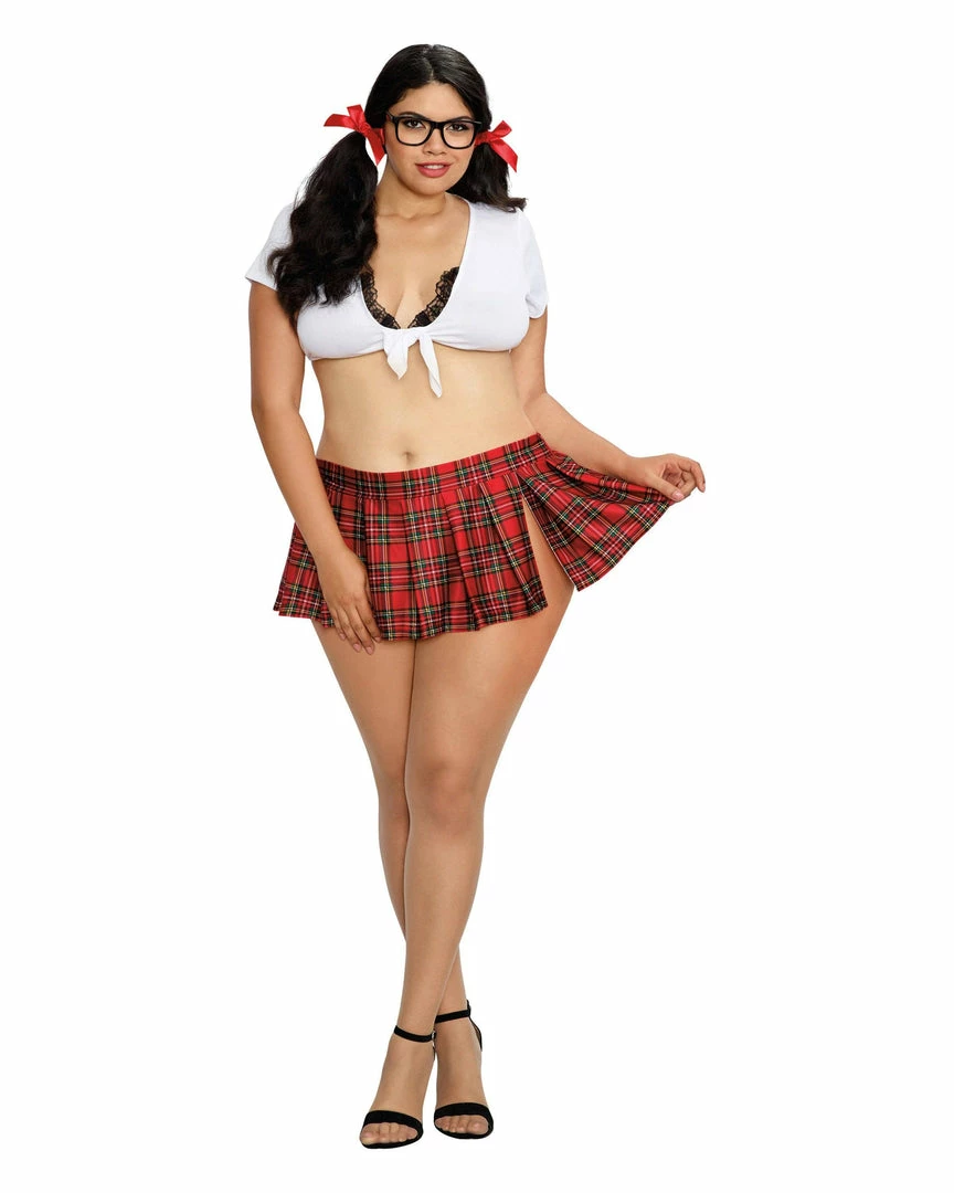 Two-piece, schoolgirl-themed set.
